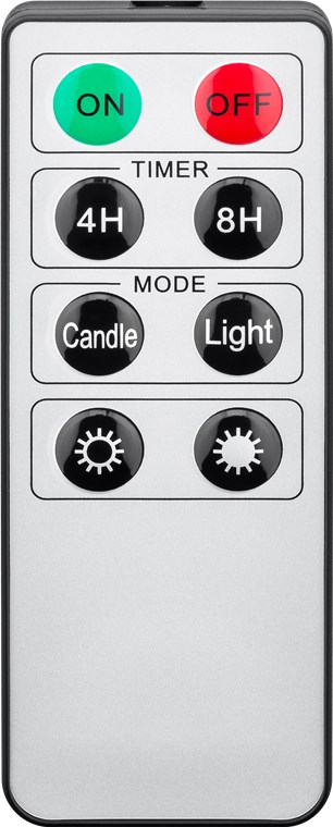 • 8-przyciskowy pilot na podczerwień do wygodnego sterowania oświetleniem świecowym (włącznik/wyłącznik czasowy, tryb oświetlenia, 5-stopniowy ściemniacz), zasięg ok. 5 m