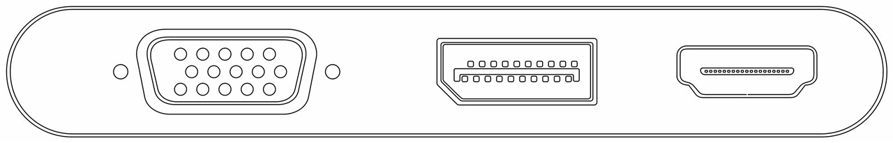 Adapter Multiport USB-C™ kieruje sygnały z USB-C™ do urządzeń VGA, DisplayPort i HDMI™. Obsługiwane są rozdzielczości do 4k*2k@30Hz dla HDMI™ i 4k*2k@60Hz DisplayPort) lub 1920px1200p@60Hz (dla VGA).