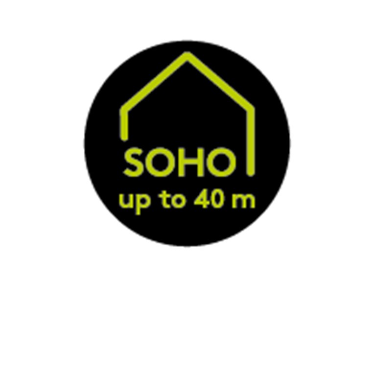 - Spełnia wymania dla zastosowań SOHO (Small Office, Home Office) do maks. odległości transmisji 40 m!