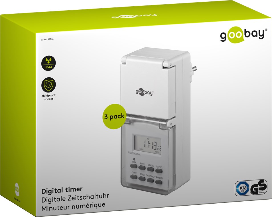 Cyfrowy zegar sterujący IP44; zestaw 3 szt