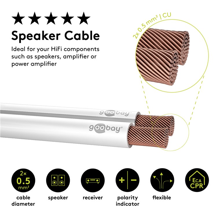 - Kable głośnikowe Goobay zapewniają prawdziwą wierność brzmienia. Nasze kable głośnikowe w połączeniu z Twoim systemem HiFi oferują Ci niespotykane doznania muzyczne w najwyższej jakości.
