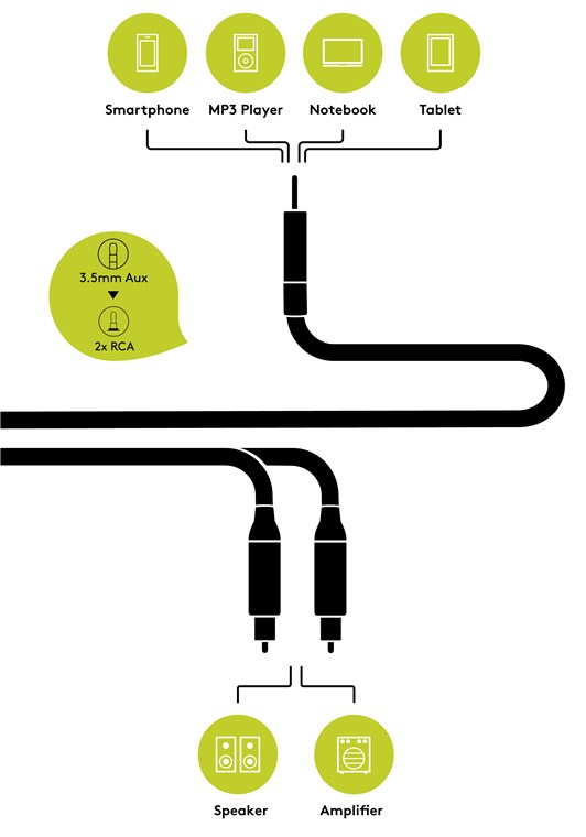 - do połączenia smartfona, tabletu i innych przenośnych urządzeń audio z dekoderem AV lub systemem dźwiękowym/telewizorem