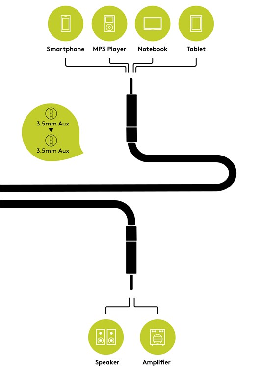 - do podłączenia smartfona, tabletu lub odtwarzaczy MP3 z głośnikami, radiem samochodowym lub systemem rozrywkowym HiFi