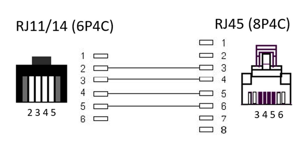 Wtyk RJ45 (8P4C) > Wtyk RJ11/RJ14 (6P4C)