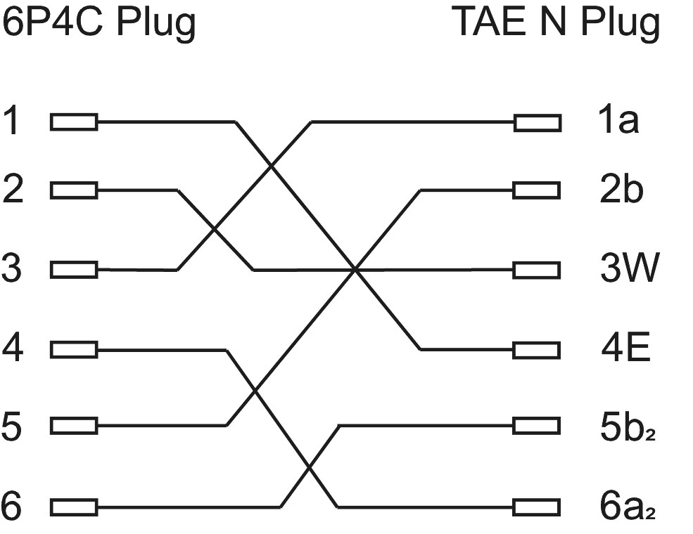 Kabel przyłączeniowy TAE (Niemcy) 6-pinowe przyporządkowanie
