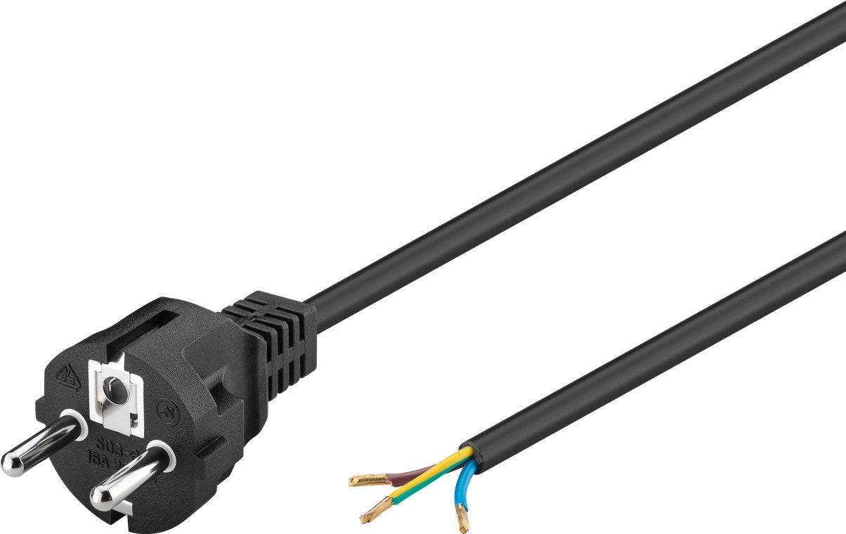 Kabel ze stykiem ochronnym, do konfekcjonowania; 2 m, Czarny