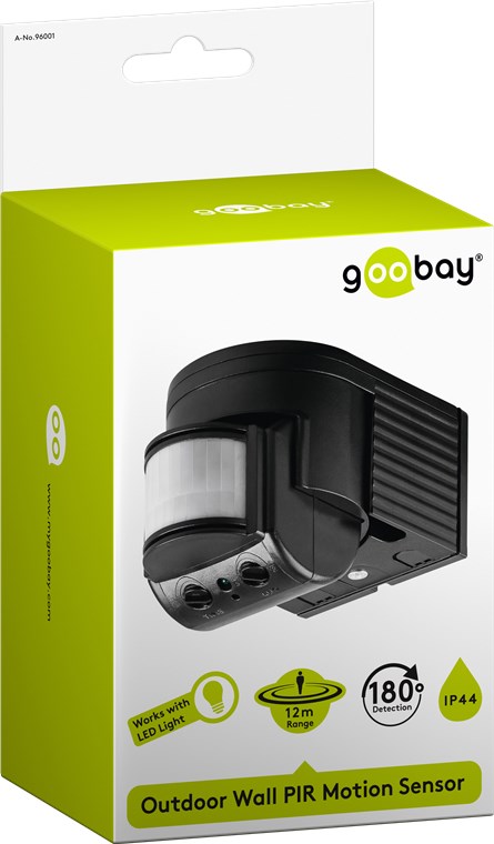 montowany na ścianie zewnętrznej; 180°Wykrywanie, zasięg 12 m, montaż napowietrzny/wyłączania(IP44), zdatność do LED