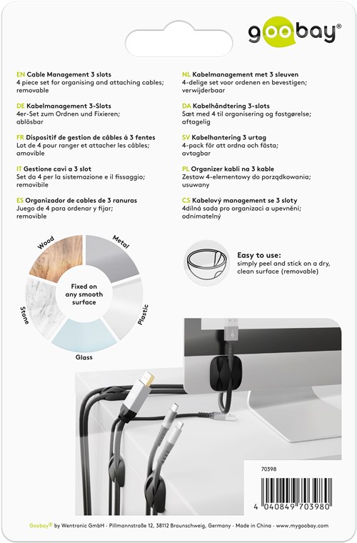 zamocowanie kabla w zasięgu ręki i zapobiega zsuwaniu się kabli ładowarki lub innych przyłączy USB za i pod biurko.