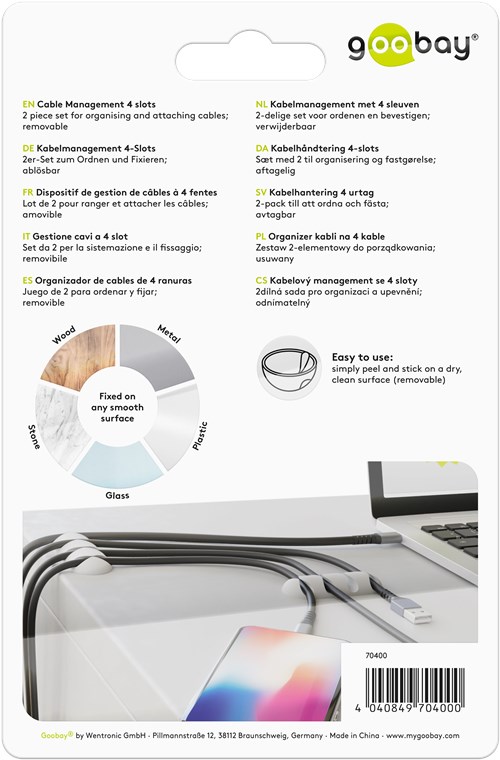 Organizer kabli na 4 kable, biały