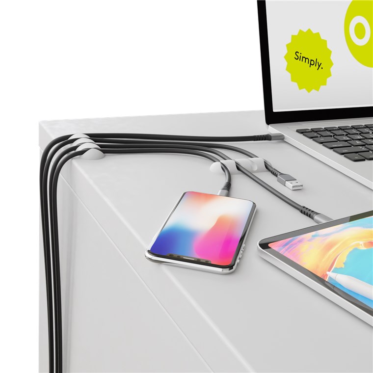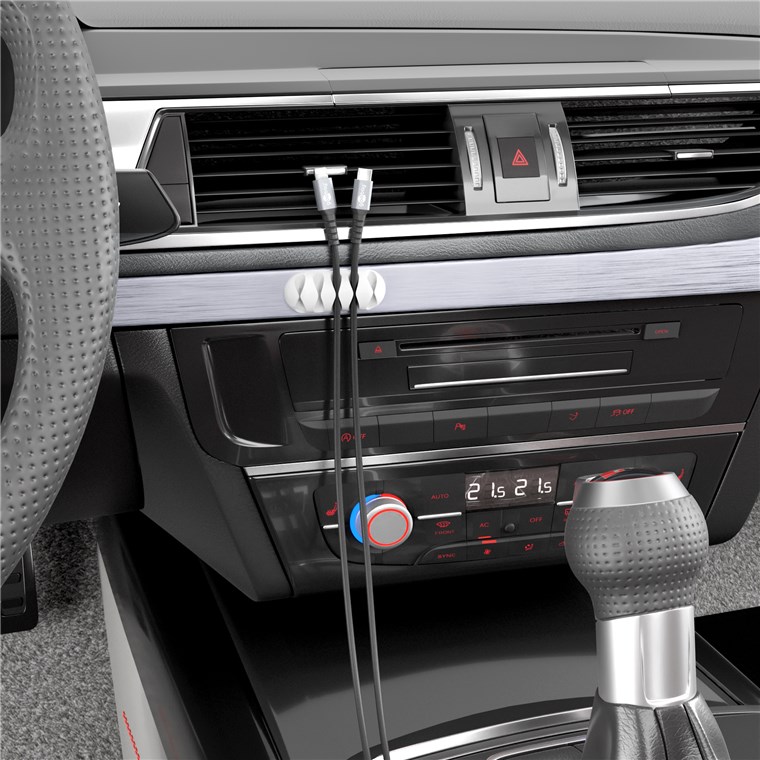 zamocowanie kabla w zasięgu ręki i zapobiega zsuwaniu się kabli ładowarki lub innych przyłączy USB za i pod biurko.