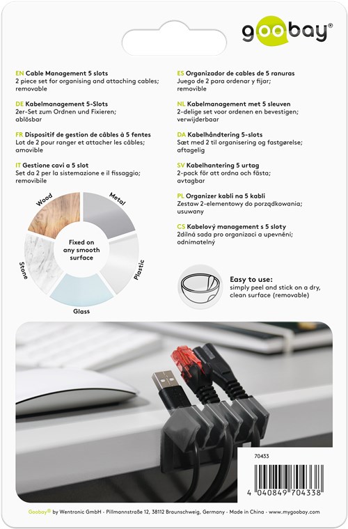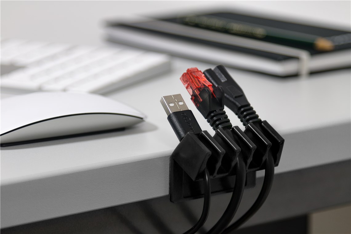 zamocowanie kabla w zasięgu ręki i zapobiega zsuwaniu się kabli ładowarki lub innych przyłączy USB za i pod biurko.
