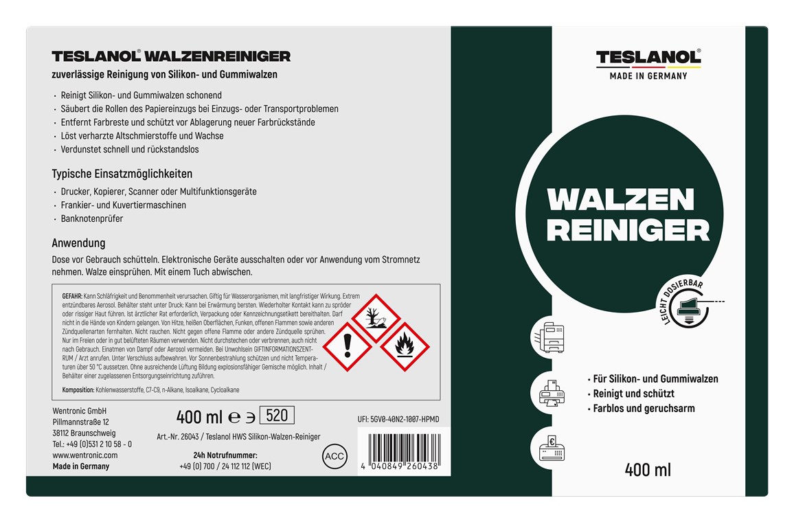 usuwa osady z rolek silikonowych i gumowych – 400 ml