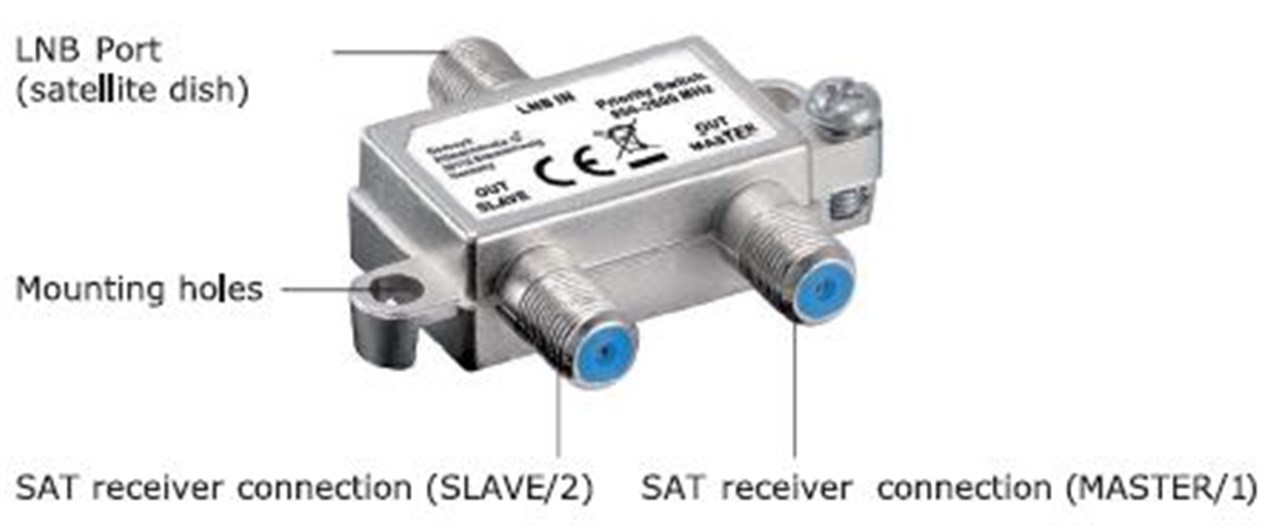rozdziela/przełącza 1 konwerter LNB na 2 odbiornik satelitarnej
