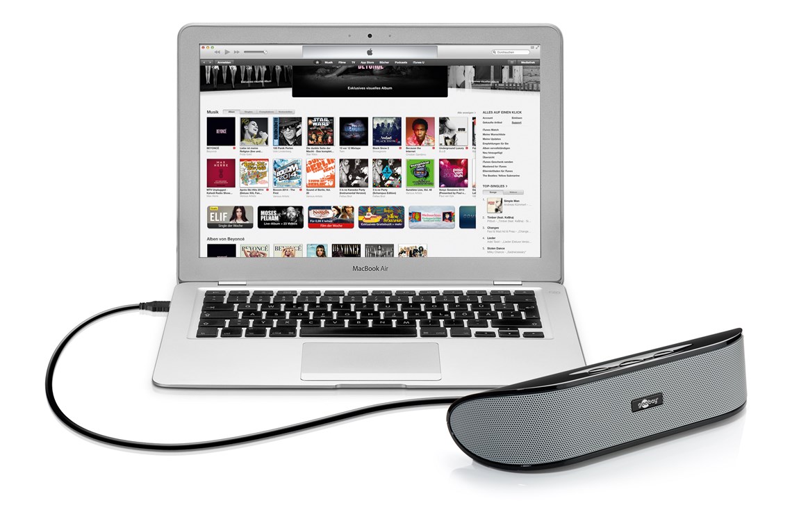 Proste, stylowe i kompaktowe - tak atrakcyjnie może wyglądać dodatkowe wyposażenie dźwiękowe do notebooków lub tabletów! Kompaktowy, dwudrożny głośnik posiada pasywną membranę subwoofera i dzięki cyfrowemu wzmacniaczowi zapewnia wyjątkowe brzmienie oraz właściwą głośność. Zintegrowana karta dźwiękowa pozwala na łatwe podłączanie metodą plug'n play przez gniazdo USB do prawie każdego komputera PC, Mac, monitora lub telewizora, a poprzez klasyczne gniazdo AUX SoundBar można podłączyć także do wielu smartfonów lub tabletów. Pojemna bateria zapewnia wielogodzinne działanie.