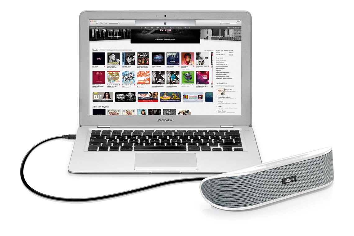 Proste, stylowe i kompaktowe - tak atrakcyjnie może wyglądać dodatkowe wyposażenie dźwiękowe do notebooków lub tabletów! Kompaktowy, dwudrożny głośnik posiada pasywną membranę subwoofera i dzięki cyfrowemu wzmacniaczowi zapewnia wyjątkowe brzmienie oraz właściwą głośność. Zintegrowana karta dźwiękowa pozwala na łatwe podłączanie metodą plug'n play przez gniazdo USB do prawie każdego komputera PC, Mac, monitora lub telewizora, a poprzez klasyczne gniazdo AUX SoundBar można podłączyć także do wielu smartfonów lub tabletów. Pojemna bateria zapewnia wielogodzinne działanie.