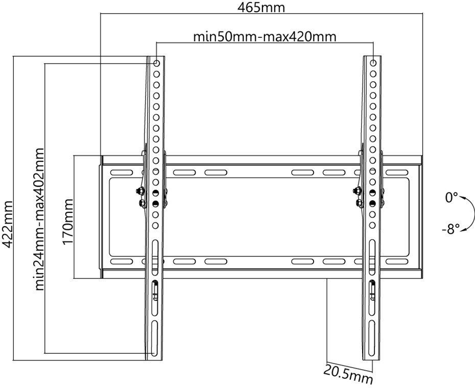 Przechylanie TV ścienny na 32 na 55 cali (81-140 cm) telewizję do 35 kg. Może ona być odchylana od 0 ° do 8 °. Super płaska konstrukcja ma tylko 20,5 mm od ściany i uzupełnia elegancki wygląd ultracienkich telewizorów. Charakteryzuje się ona w otwartej konstrukcji, który maksymalizuje powietrza do urządzeń i pozwala na łatwy dostęp do tylnej części składowych. Telewizor można przesuwać w lewo i prawo na płycie ściennej, aby ustawić ją dokładnie.