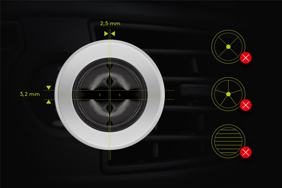 - sprytne i niemalże niewidoczne mocowanie na kratkach wentylacyjnych samochodu