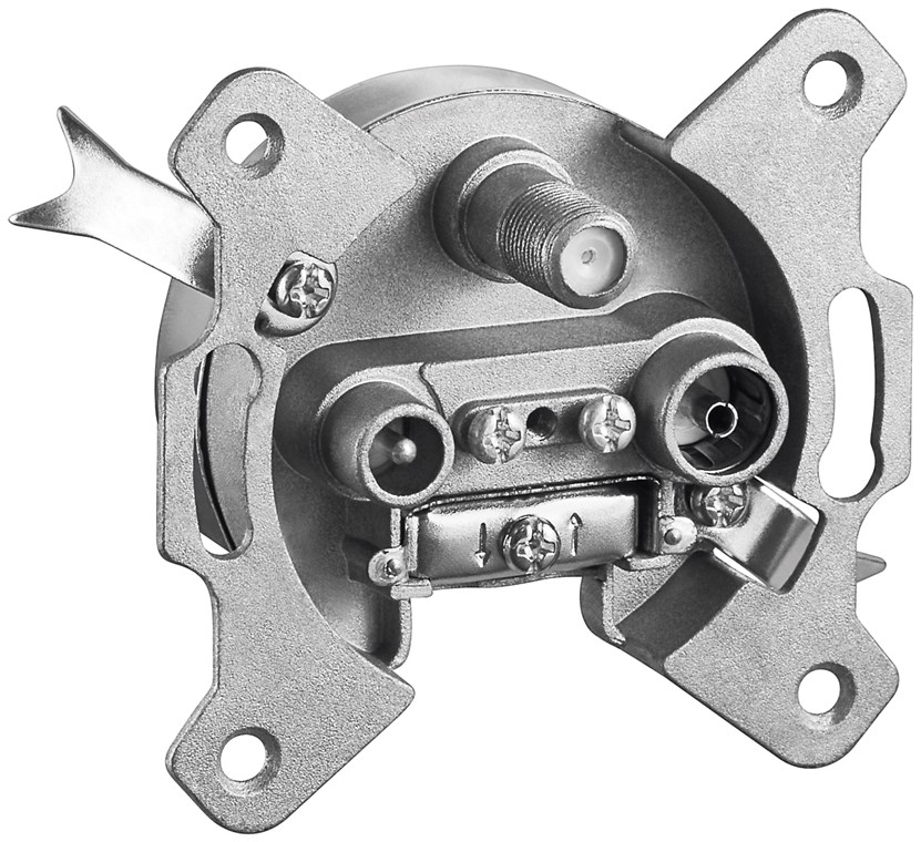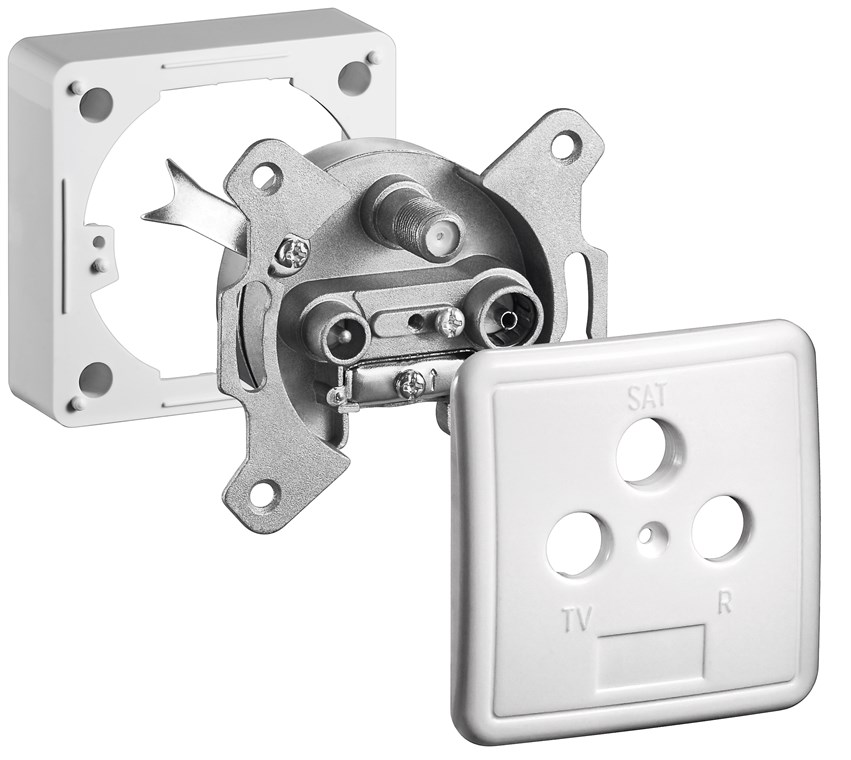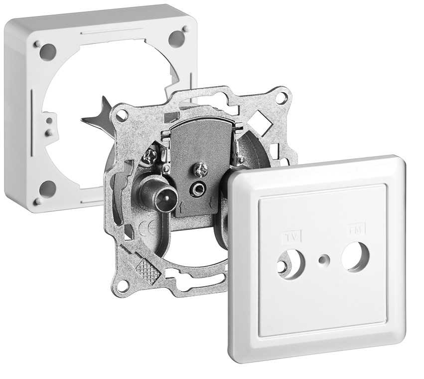 z ramką natynkową i osłoną; gniazdo wtykowe lub końcowe z przejściem napięcia stałego (DC); 1 dB