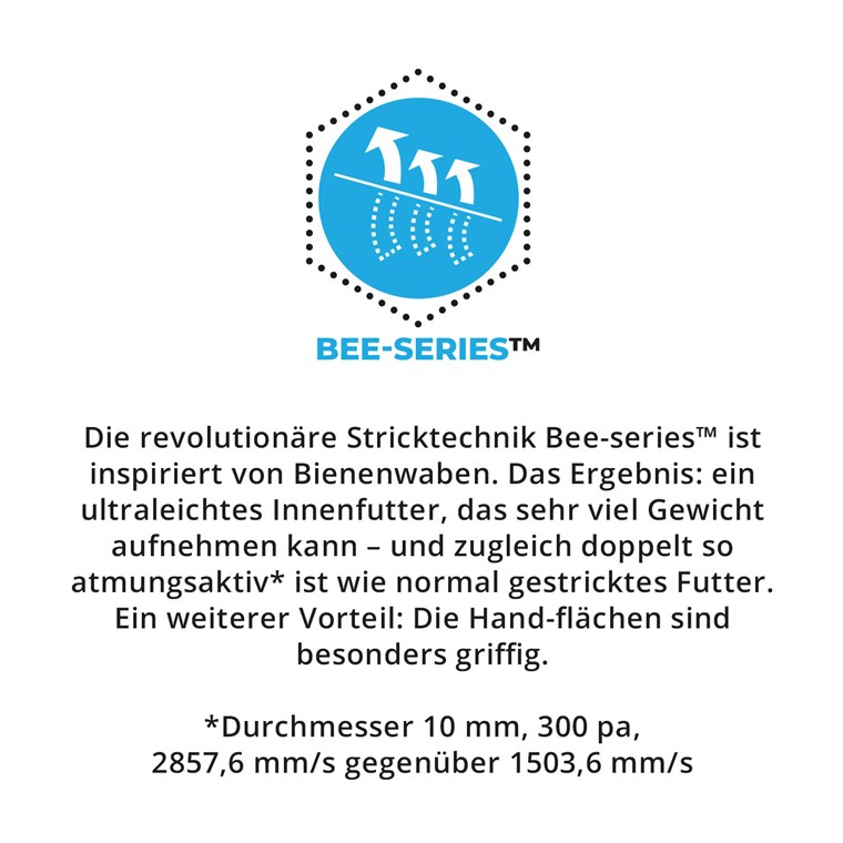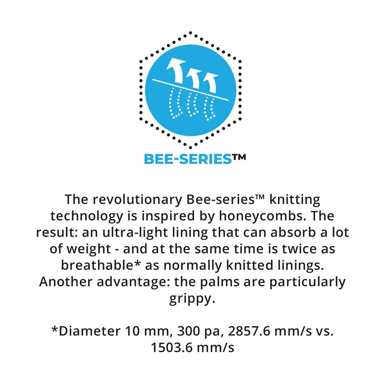 Odporność na olej oraz optymalna i trwała przyczepność. Górna część rękawicy wykonana jest z bardzo lekkiej podszewki, która zapewnia zarówno dużą sztywność skrętną, jak i niezrównaną oddychalność. Technologia dzianiny Bee-series™ tworzy unikalny kształt na dłoni i maksymalizuje współczynnik tarcia powłoki. Dolna część rękawicy korzysta z technologii DuaLiner™ i jej specjalnego podparcia z tyłu dłoni, zapewniając pewne i pewne dopasowanie. Dzięki serii Bee-series™, DuaLiner™ i powłoce nitrylowej, WG-522 Bee-Tough wyznacza nowe standardy w zakresie komfortu pracy w środowisku tłustym i zaolejonym.