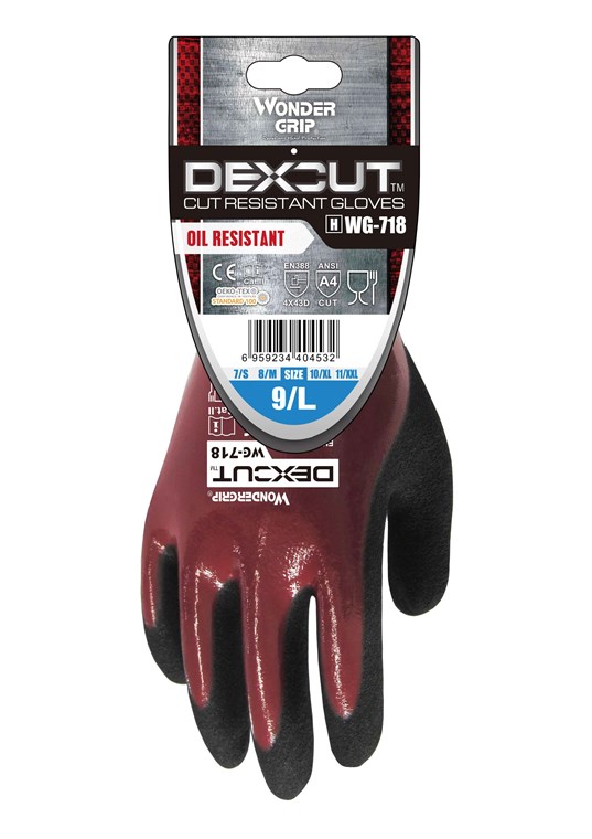 WG-718 Dexcut® jest potrójną rękawicą powlekaną nitrylem z 13-stopniową wkładką pomiarową.